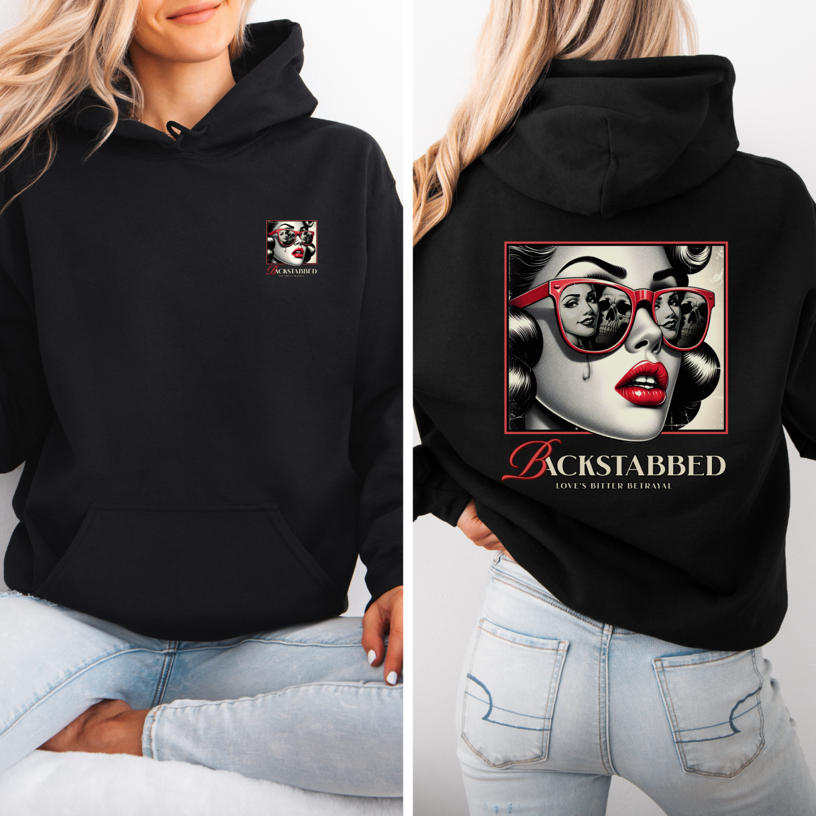 Un manifest vizual despre iubire, trădare și puterea de a rămâne cool chiar și atunci când lumea se destramă. Hanoracul „Backstabbed – Love’s Bitter Betrayal” îmbină arta pop clasică cu estetica urbană modernă, transformând emoțiile intense în stil autentic.